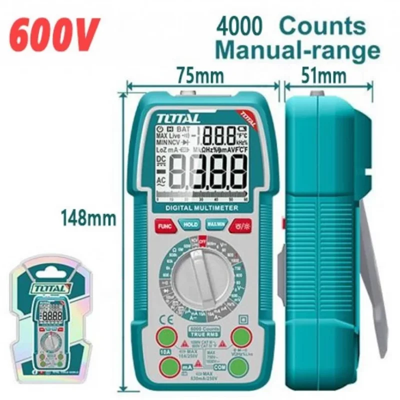 MULTIMETRO TESTER DIGITAL 600V 4000 CUENTAS INDUSTRIAL TOTAL