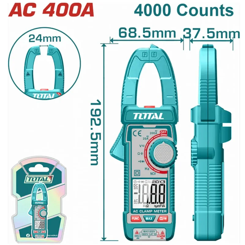 PINZA AMPEROMÉTRICA DIGITAL AC 400A INDUSTRIAL TOTAL
