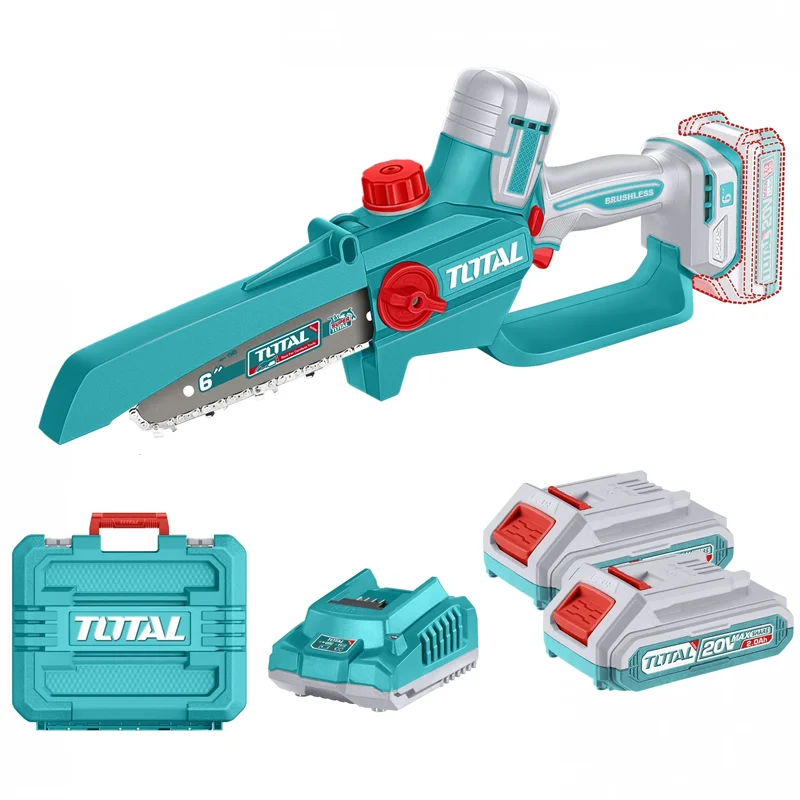 Compatible con diferentes accesorios. ACCESORIO CORTACÉSPED Y DESBROZADORA (TATLI4012): Diámetro de corte de la cuchilla: 255 mm. Diámetro de corte de la motosierra: 380 mm. Diámetro del hilo: 2,4 mm redondo. Longitud del hilo: 5 m. ACCESORIO CORTASETOS DE ALTURA (TATLI4013): Longitud de corte de la cuchilla: 38 cm. Diámetro de corte: 23 mm Cuchilla cortada a láser. Palanca de cambio de ángulo que ajusta el ángulo de la cuchilla de forma rápida y sencilla. ACCESORIO CORTACÉSPED (TATLI4014): Longitud de la espada: 20 cm. Velocidad de la cadena: 15 m/s. Capacidad del depósito de aceite: 120 ml. Lubricación automática de la cadena. INCLUYE: 1 cabezal de corte,1 motosierra de 3 dientes Cuchilla de 255 mm, 1 cadena de 20 cm,1 barra de 20 cm, 1 funda para la barra, 1 funda para la cuchilla del cortasetos, 1 correa para el hombro, 2 llaves hexagonales, 2 llaves de bujía, 2 baterías de 4 Ah (TFBLI20021) y 1 cargador de doble puerto (TCLI2034-4). |