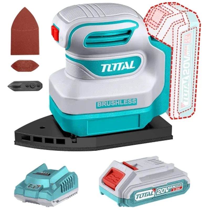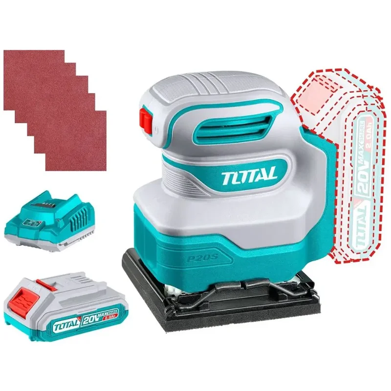 3 Lijas delta, 1 adaptador mini, 3 lijas mini, 2 baterías 2 AH, cargador