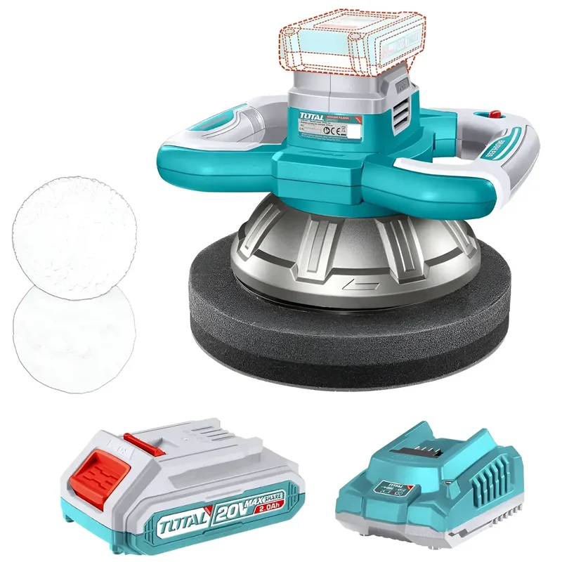 1 almohadilla de pulido con cierre autoadherente. 1 almohadilla de esponja. 1 almohadilla de lana. 3 lijas. 2 baterías M16 de 2,0 Ah (TFBLI1620).1 cargador M16 (TFCLI1613). Maletín.