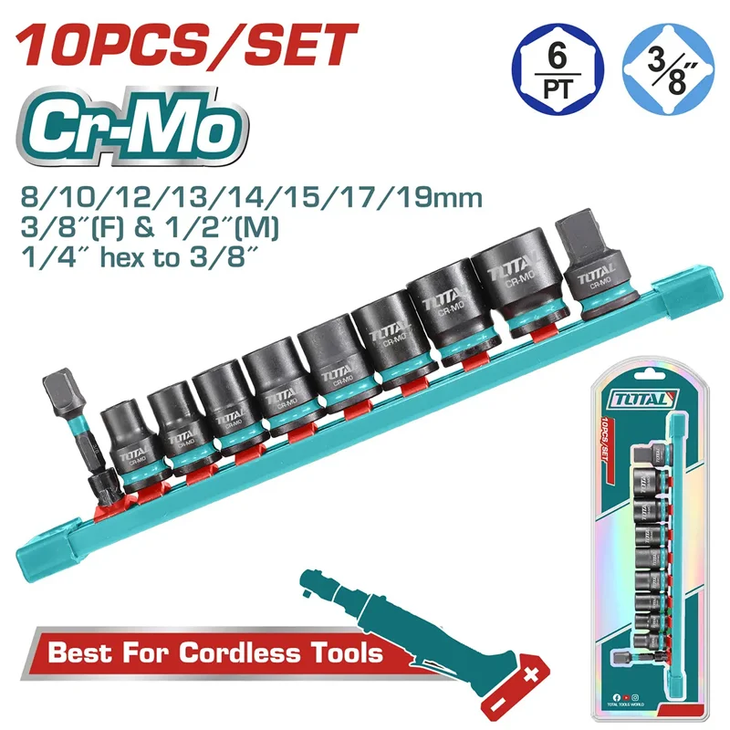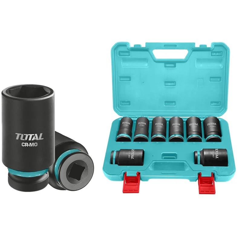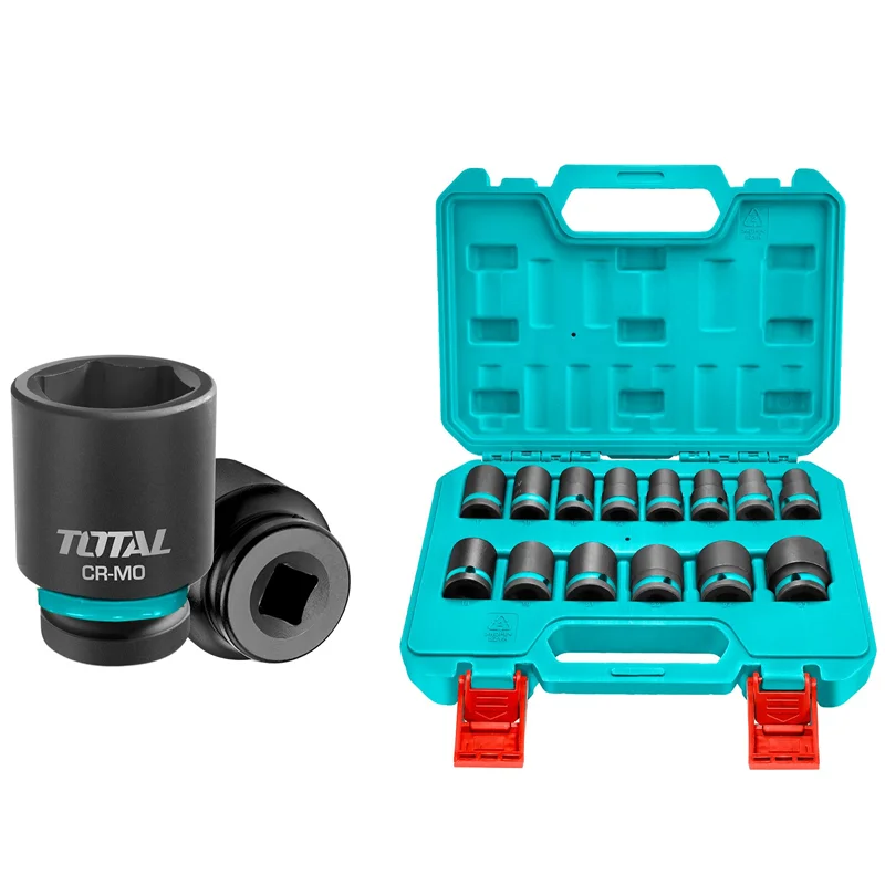 SET DE 14 ACCESORIOS PARA LLAVE DE IMPACTO 1/2" INDUSTRIAL TOTALJuego de dados de impacto de 14 piezas 1/2″. Medidas: 10, 11, 12, 13, 14, 15, 16, 17, 18, 19, 21, 22, 24, 27 mm. Material: acero al cromo-molibdeno (Cr-Mo). Extrusión en frío. Tratamiento térmico. Compatible con múltiples llaves de impacto Total. Empaque: maletín BMC resistente. |